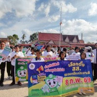 ตัวแทนครูและนักเรียนเข้าร่วมกิจกรรมเดินรณรงค์การเลือกตั้งการเลือกตั้งสมาชิกสภาผู้แทนราษฎรเป็นการทั่วไป (สส.) และการออกเสียงประชามติ