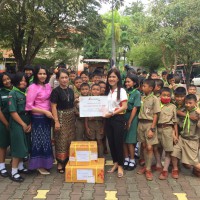 ให้โรงเรียนโดยมี นางนาตยา ไชยกูล รองผู้อำนวยการโรงเรียน และ นางโสภา ธิวงศ์ หัวหน้าบริหารงานวิชาการโรงเรียนเป็นตัวแทนรับมอบ |