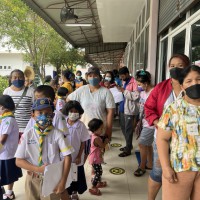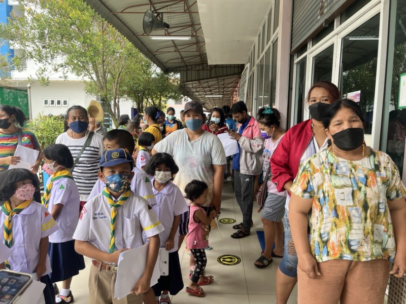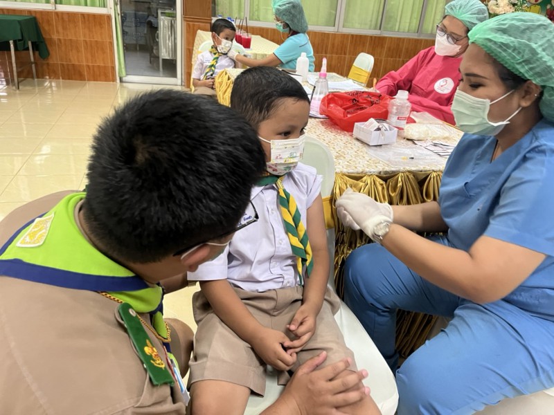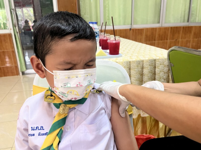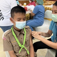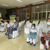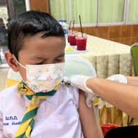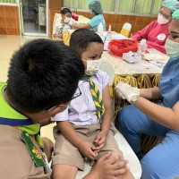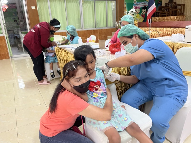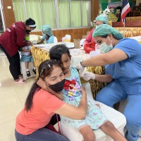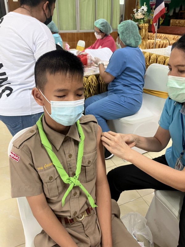เจ้าหน้าที่สาธารณสุข ให้บริการฉีดวัคซีนสำหรับ 5-11 ปี (ฝาส้ม)