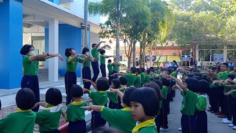 กิจกรรมออกกำลังกายหน้าเสาธงเป็นประจำทุกวันพุธ (Sport Day)