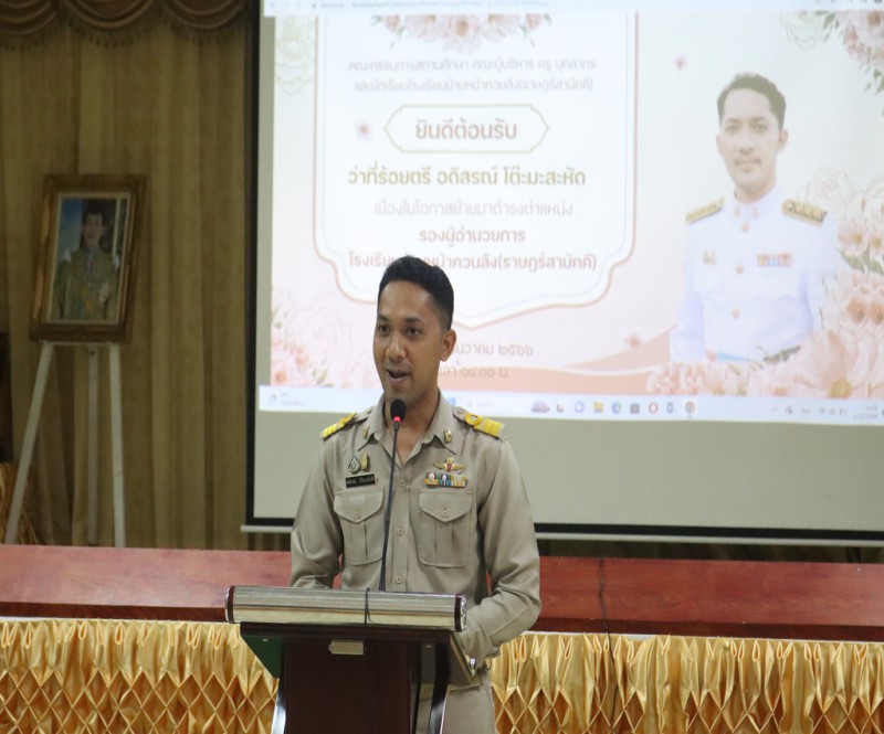 วันศุกร์ ที่ 1 ธันวาคม 2566 ดร.เรวดี เชาวนาสัย ผู้อำนวยการโรงเรียนบ้านหน้าควนลัง(ราษฎร์สามัคคี) พร้อมด้วยนางลดานที จินดานิมิตร บุปผะโพธิ์ รองผู้อำนวยฯ คณะครู นักเรียน โรงเรียนโรงเรียนบ้านหน้าควนลัง(ราษฎร์สามัคคี) ให้การต้อนรับ ว่าที่ ร.ต. อดิสรณ์ โต๊ะมะสะหัด เนื่องในโอกาสเข้ารับตำแหน่งรองผู้อำนวยการโรงเรียนบ้านหน้าควนลัง(ราษฎร์สามัคคี) ณ ห้องประชุมมุจลินทร์ โรงเรียนบ้านหน้าควนลัง(ราษฎร์สามัคคี) สถานศึกษาสังกัดสำนักงานเขตพื้นที่การศึกษาประถมศึกษาสงขลา เขต 2 |