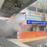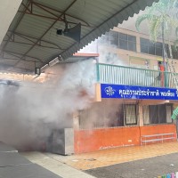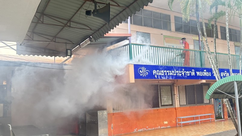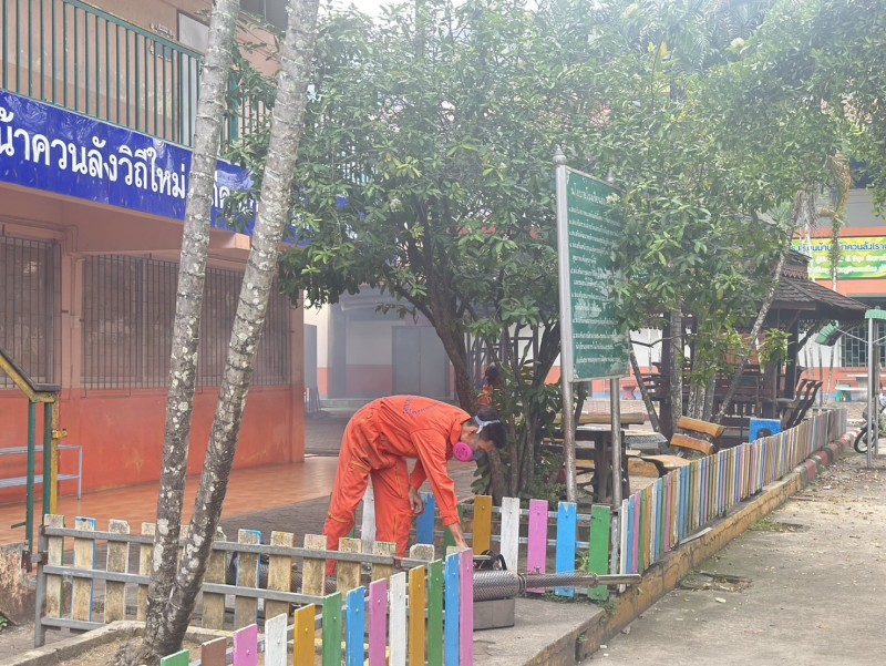 เจ้าหน้าที่จากเทศบาลเมืองควนลังเข้ามาฉีดพ่นสารเคมีแบบละอองฝอย(ULV)