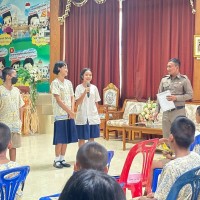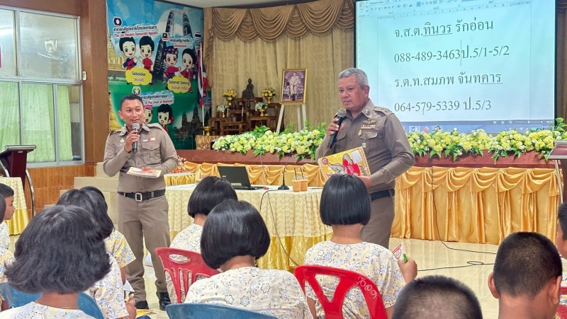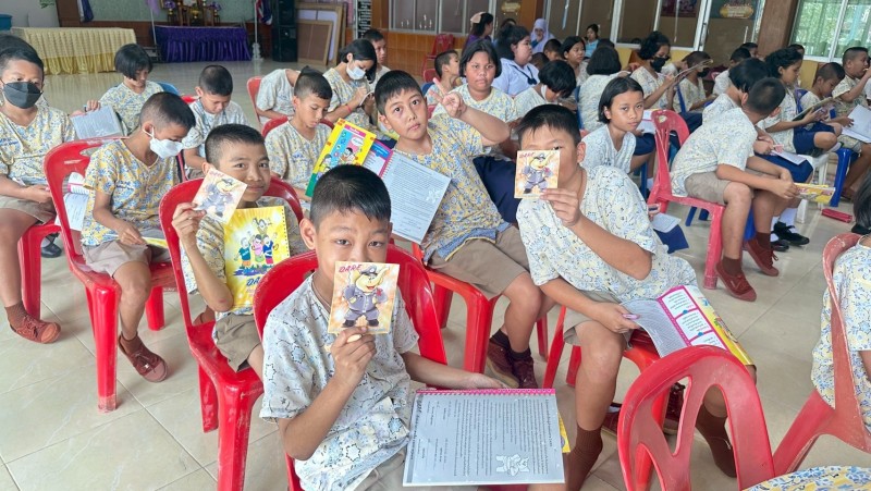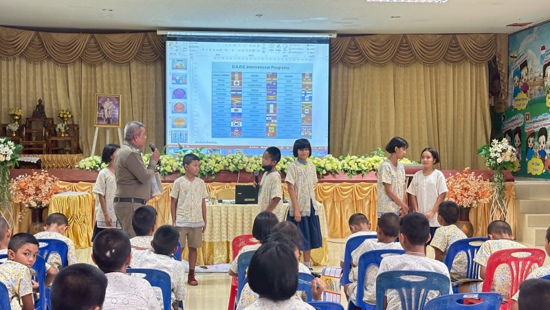 ครูตำรวจD.A.R.E. ทำการสอนตามโครงการการศึกษาเพื่อต่อต้านการใช้ยาเสพติดในเด็กนักเรียน (D.A.R.E.ประเทศไทย)