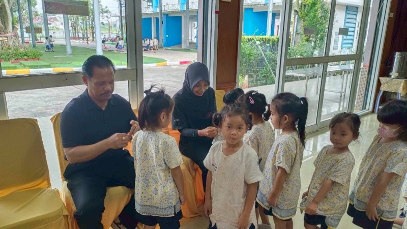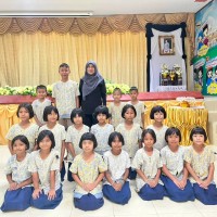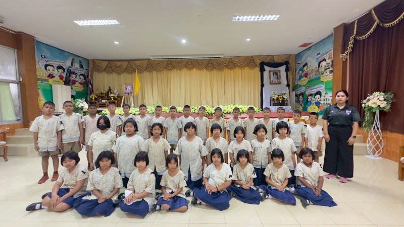 โรงเรียนมอบโบว์เข็มกลัดไว้อาลัยสมเด็จพระบรมราชชนนีพันปีหลวงแก่นักเรียน