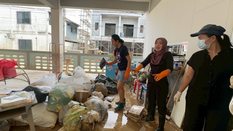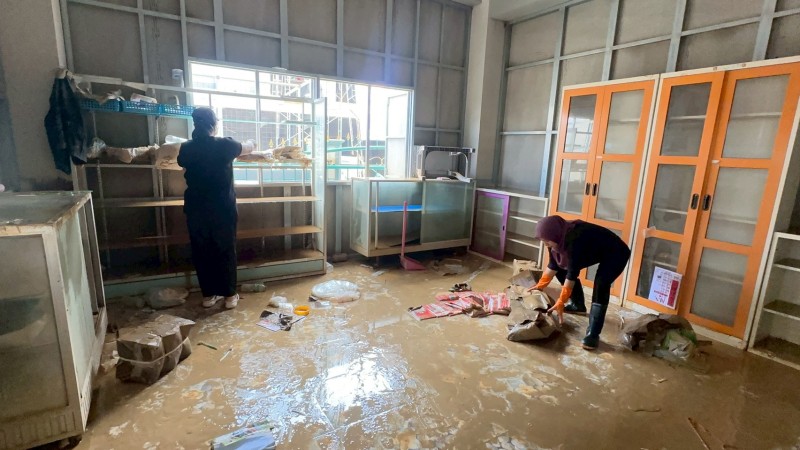 ร่วมแรง ร่วมใจ ทำความสะอาดฟื้นฟูโรงเรียนหลังน้ำลด