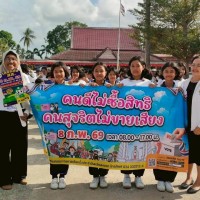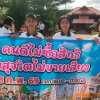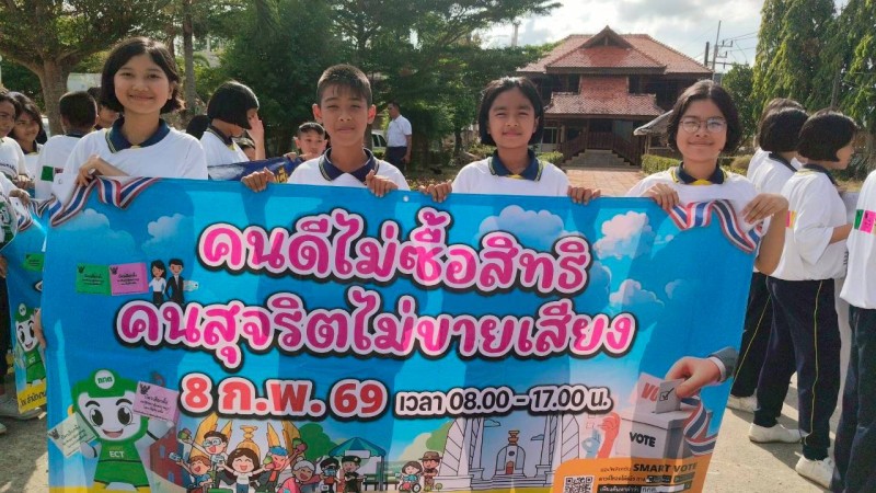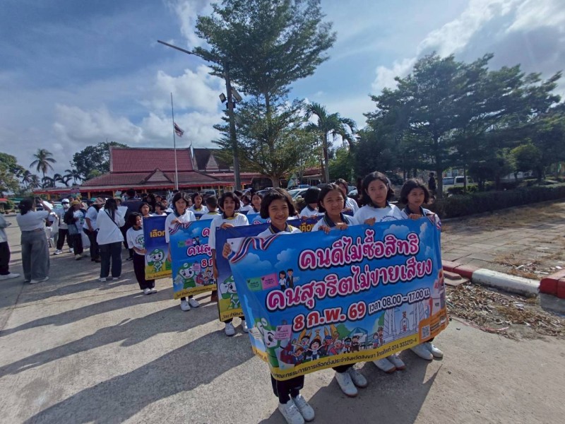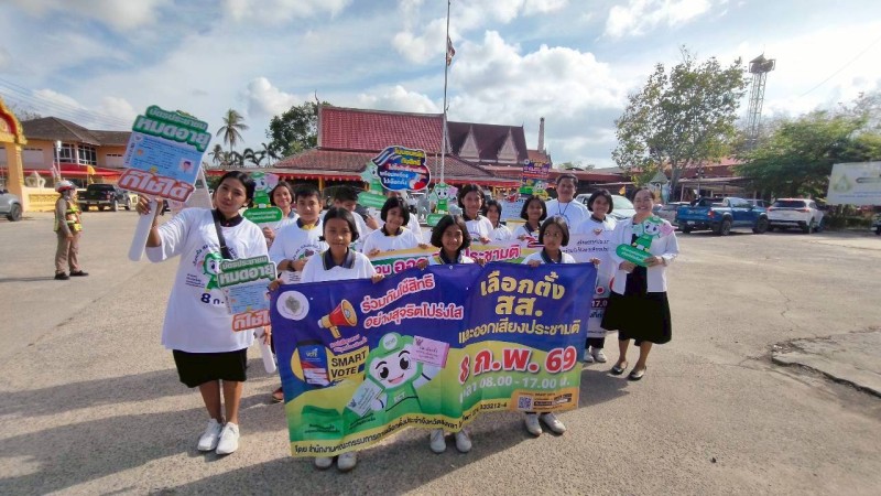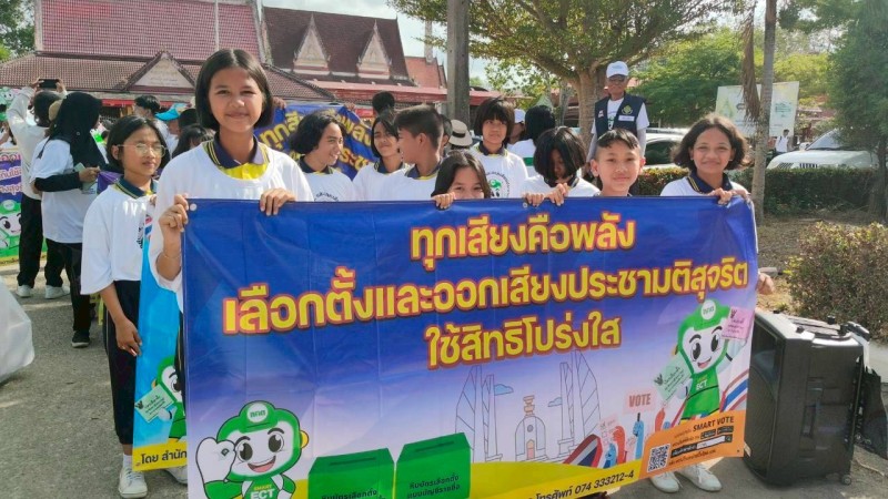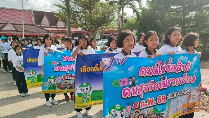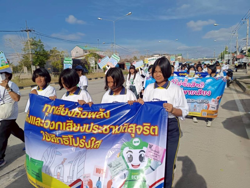 ตัวแทนครูและนักเรียนเข้าร่วมกิจกรรมเดินรณรงค์การเลือกตั้งการเลือกตั้งสมาชิกสภาผู้แทนราษฎรเป็นการทั่วไป (สส.) และการออกเสียงประชามติ
