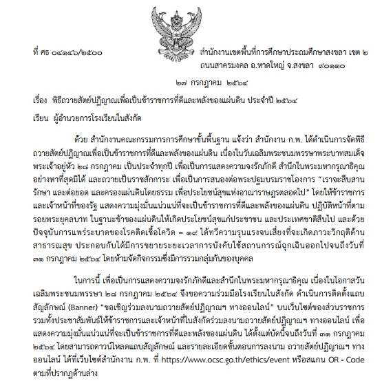 พิธีถวายสัตย์ปฏิญาณเพื่อเป็นข้าราชการที่ดีและพลังของแผ่นดิน