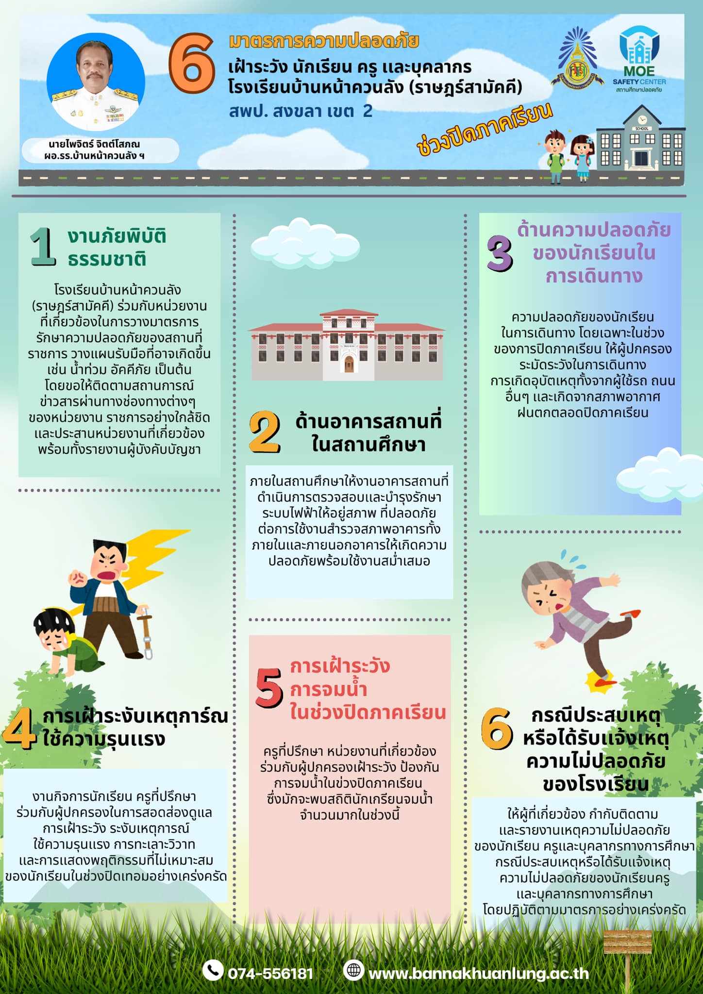 6 มาตรการความปลอดภัยในช่วงปิดภาคเรียนของโรงเรียนบ้านหน้าควนลัง(ราษฎร์สามัคคี) ประจำปีการศึกษา 2567