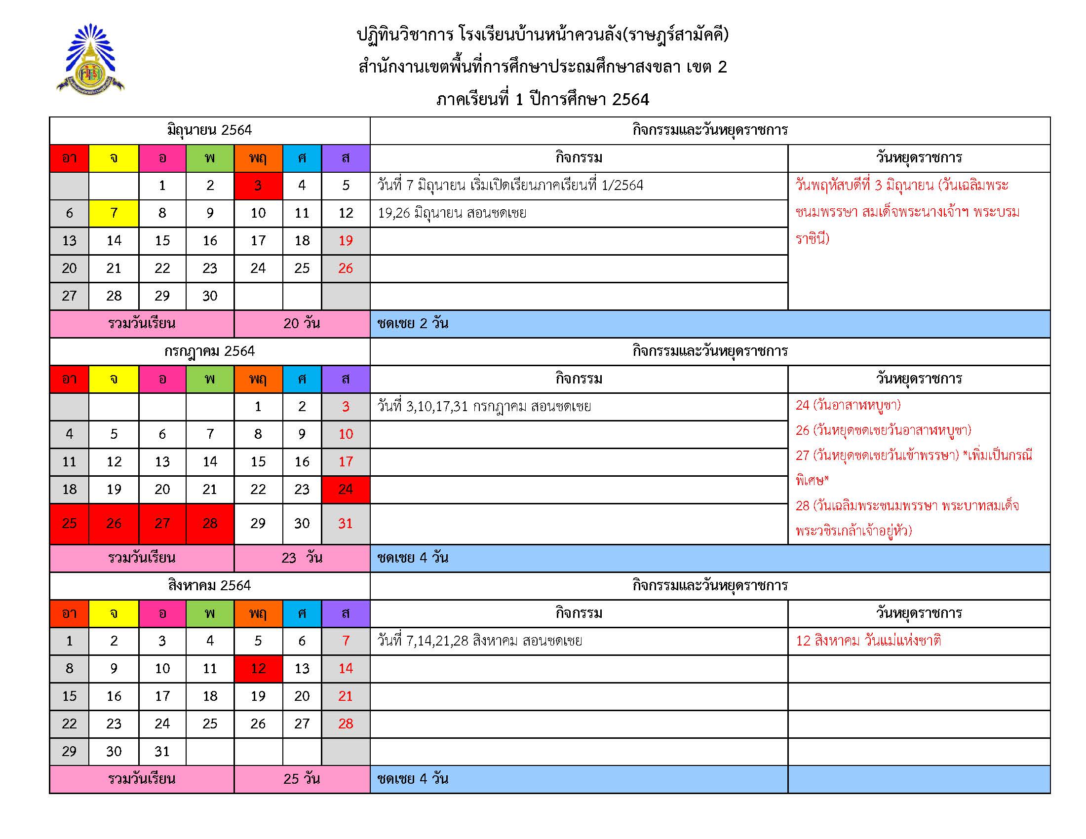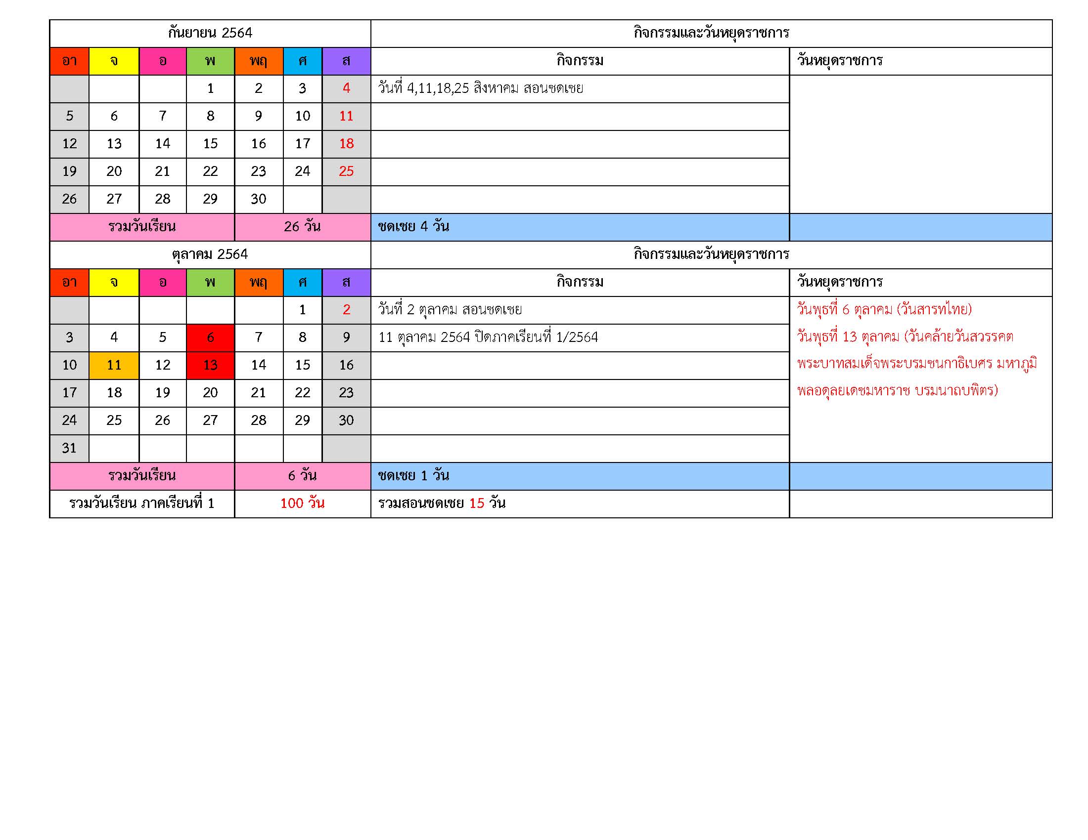ปฏิทินกิจกรรมภาคเรียนที่ 1/2564