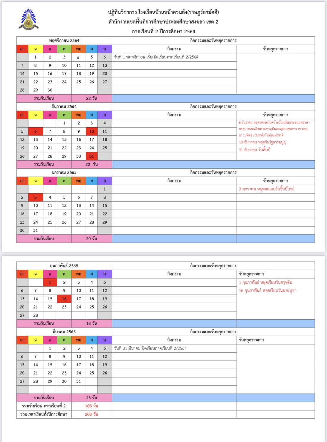 ปฏิทินวิชาการ 2 โรงเรียนบ้านหน้าควนลัง ปฏิทินวิชาการ 2 โรงเรียนบ้านหน้าควนลัง